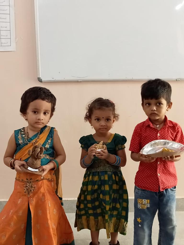 The students along with their parents made eco-freindly Ganesha’s by using different types of clays which help them showcase their artistic skills.